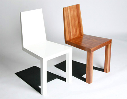 Diseño de una silla que desafía la gravedad teniendo como soporte una sombra de metal.